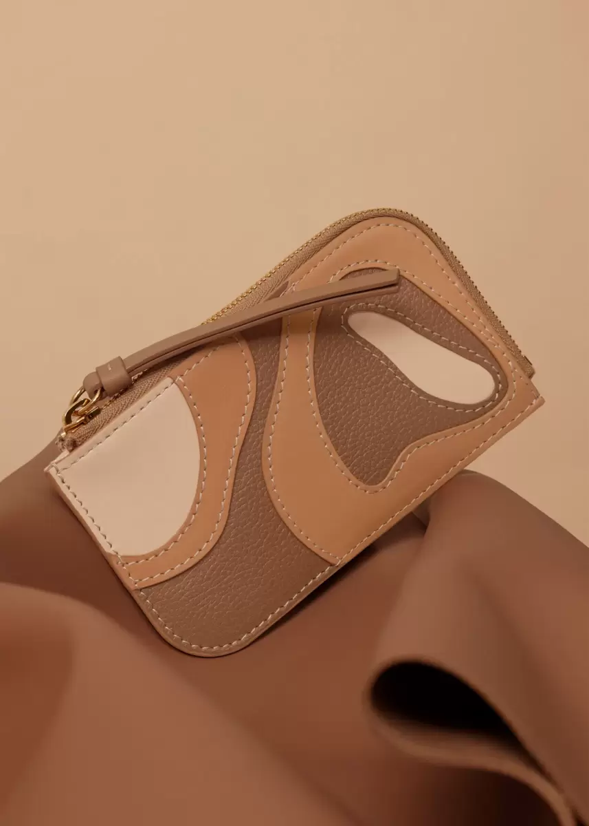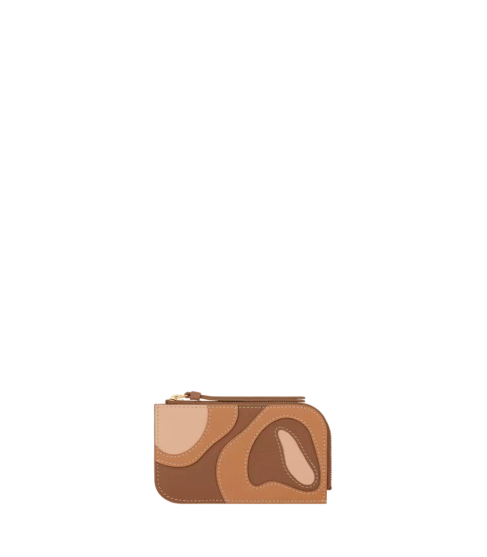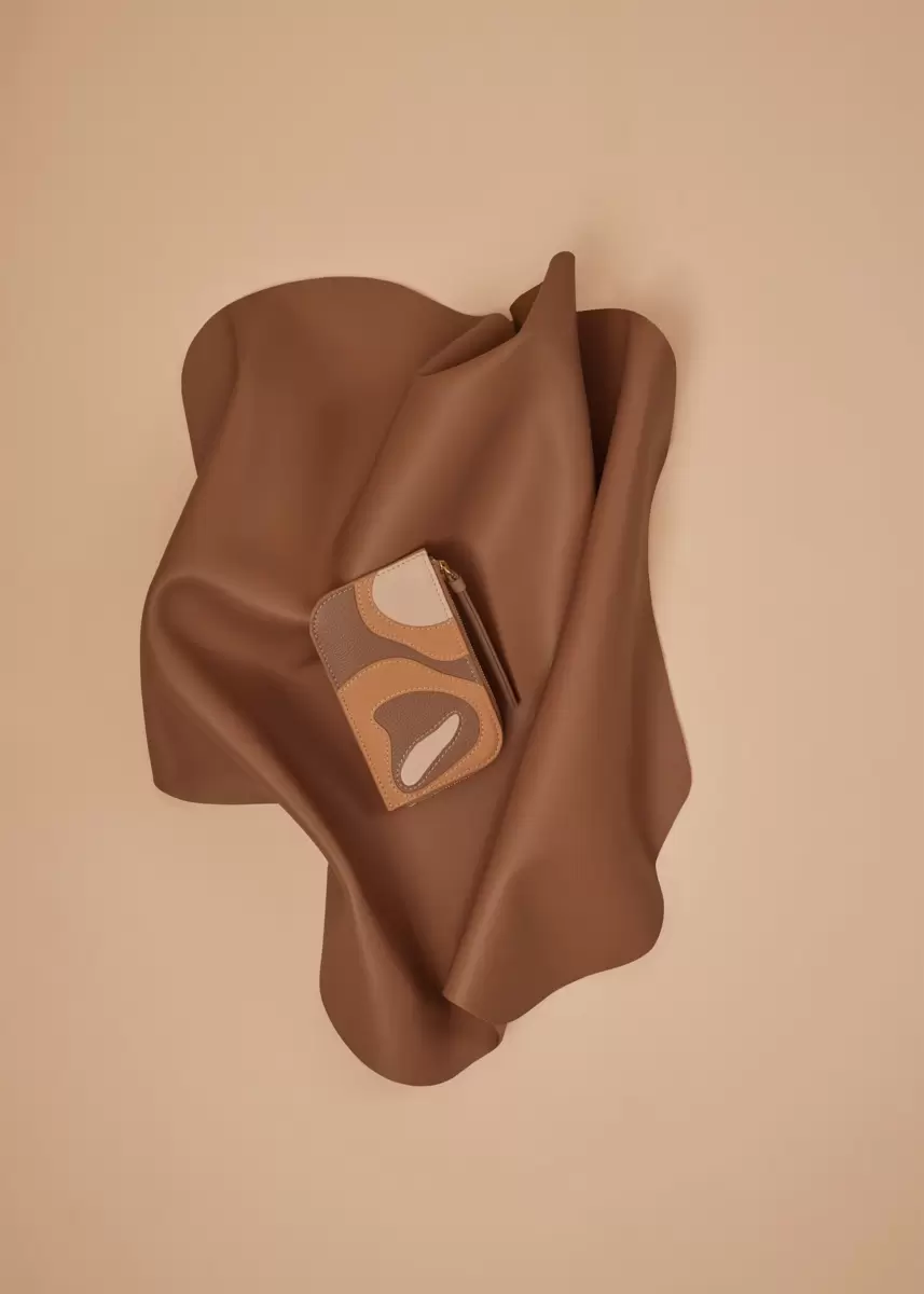 Inspired by mountain relief cartography, the “Atla” card holder recreates these patterns in a patchwork design using leather off-cuts from Polène collections.