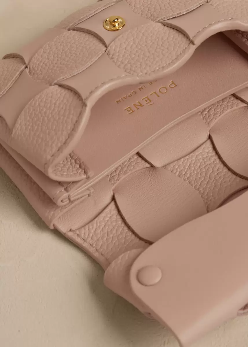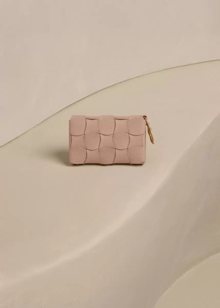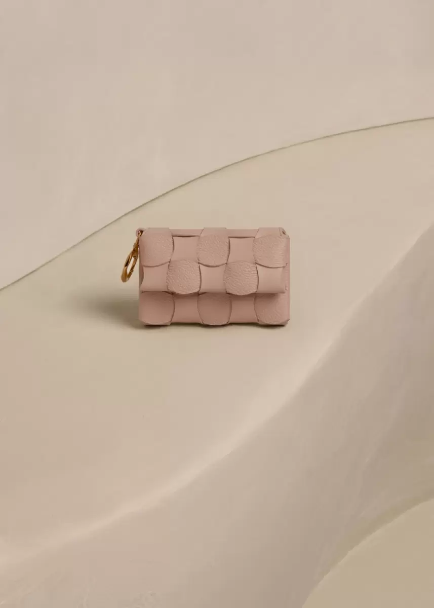 The "Neiti" card holder reinterprets an iconic leather goods braiding technique, softening it with wave-like undulating lines. Cleverly folded smooth and textured tone-on-tone leathers give the bag its shape and volume.