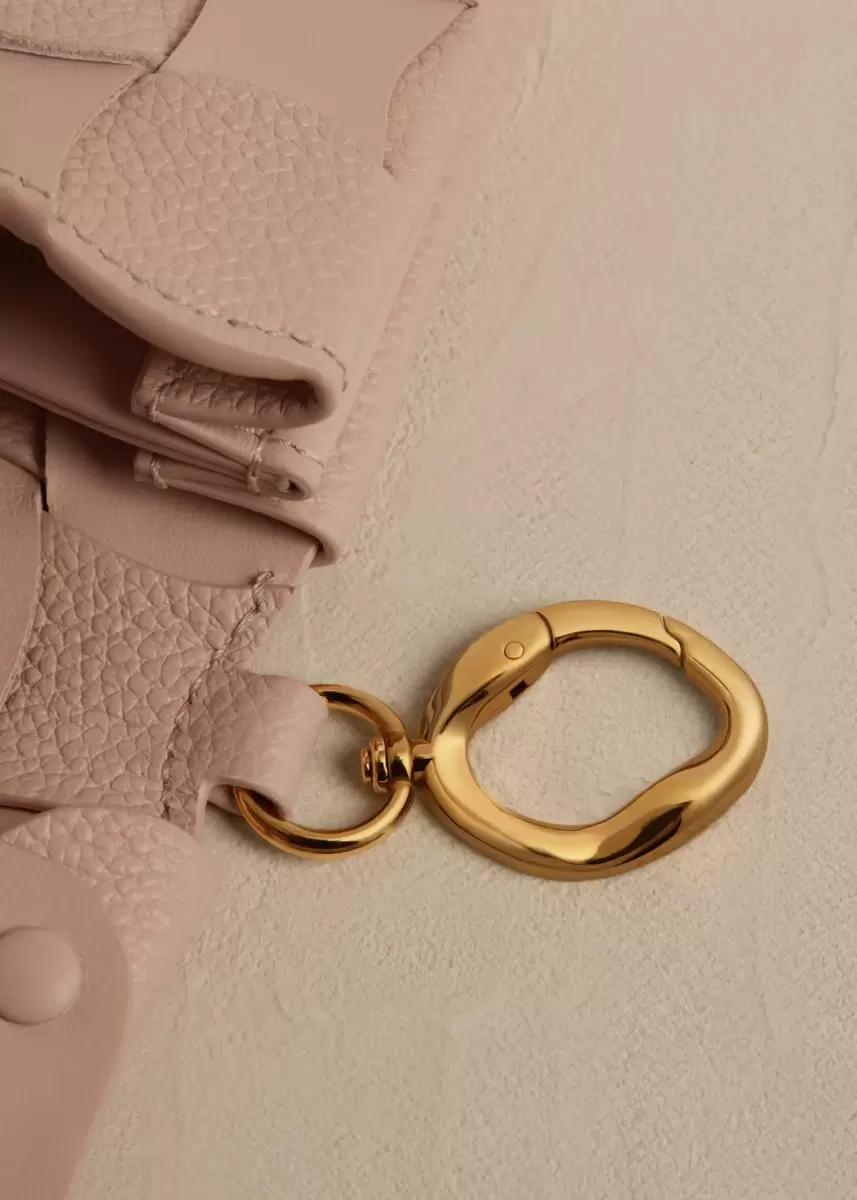 The “Neiti” card holder reinterprets an iconic leather goods braiding technique, softening it with wave-like undulating lines. Cleverly folded smooth and textured tone-on-tone leathers give the bag its shape and volume.