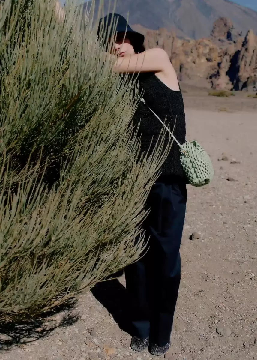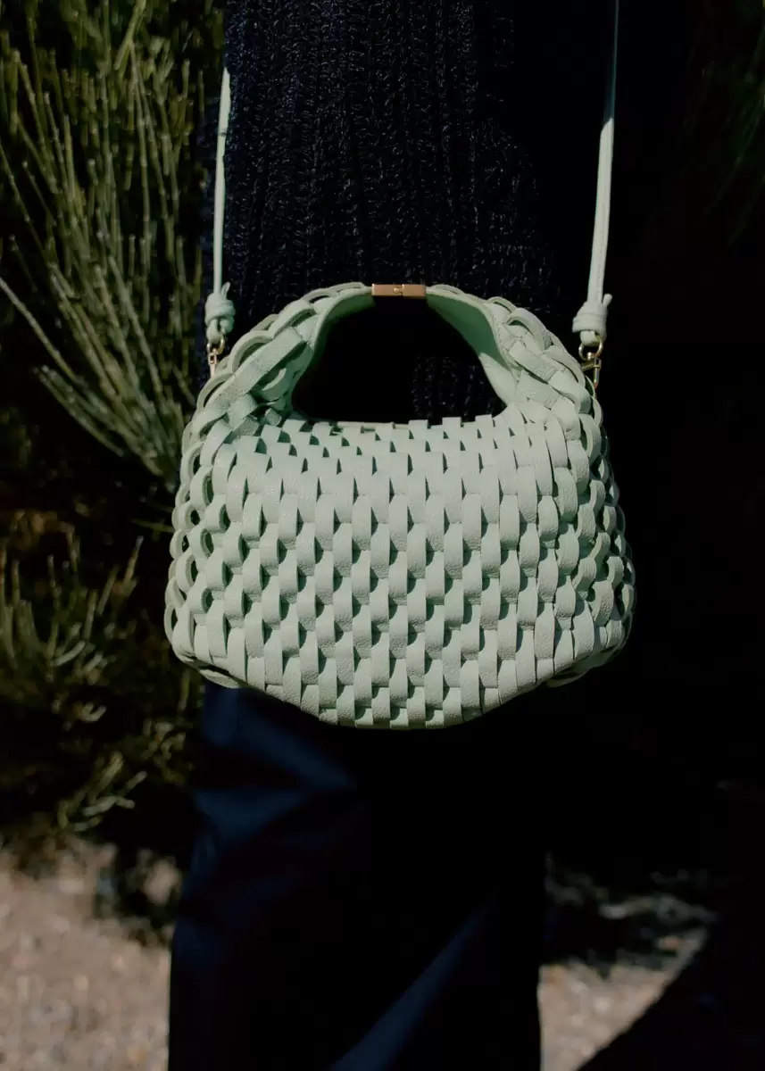 • Hand-knotted shoulder strap.