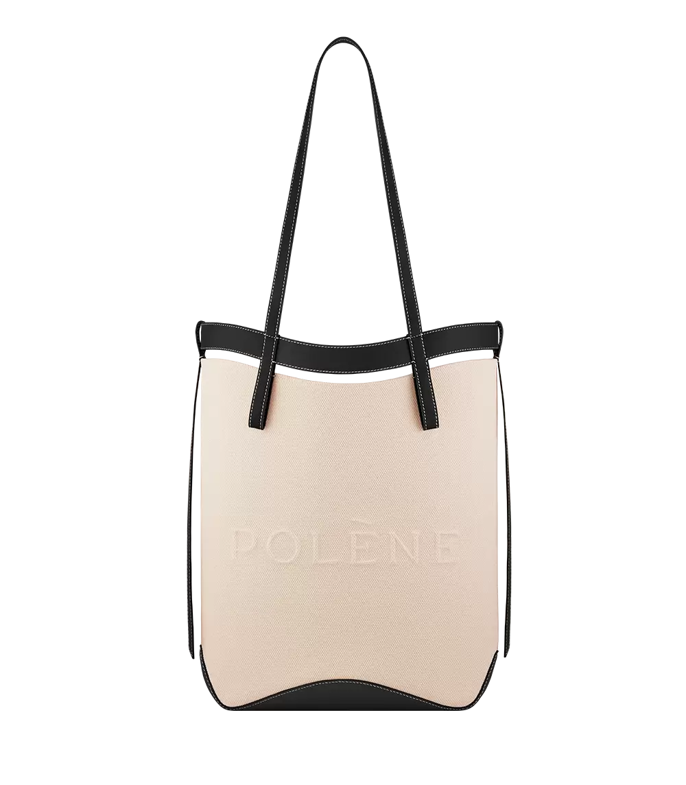 The “Ilo” tote bag combines functionality with leather detailing. Its cotton fabric is held in place by a series of loops and creates soft lines highlighted by thin strips of leather. Its vertical shape means that it can conveniently hold a laptop and A4 papers. Polène’s logo is elegantly imprinted with tone-on-tone high-frequency debossing.