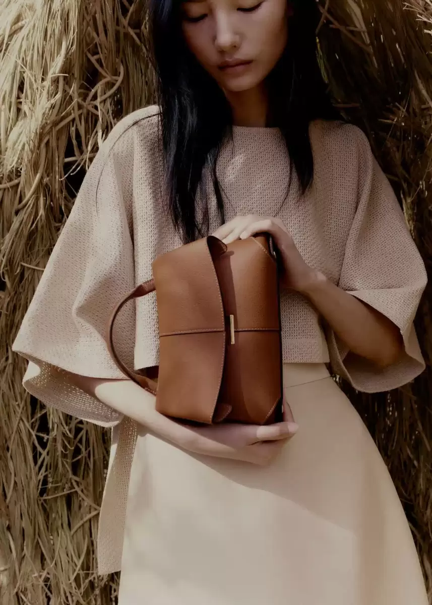 • Polène branded clasp and organically designed bottom studs bearing the Polène logo.
