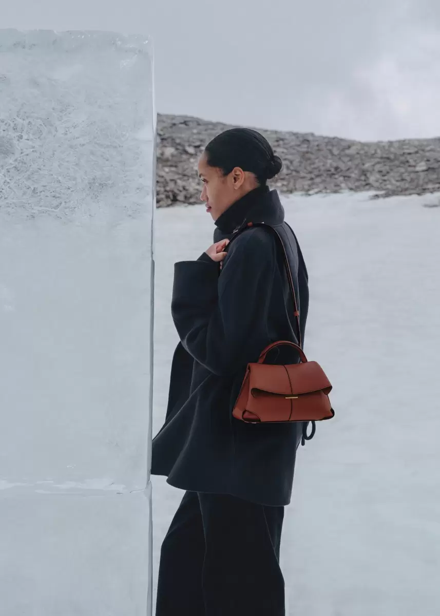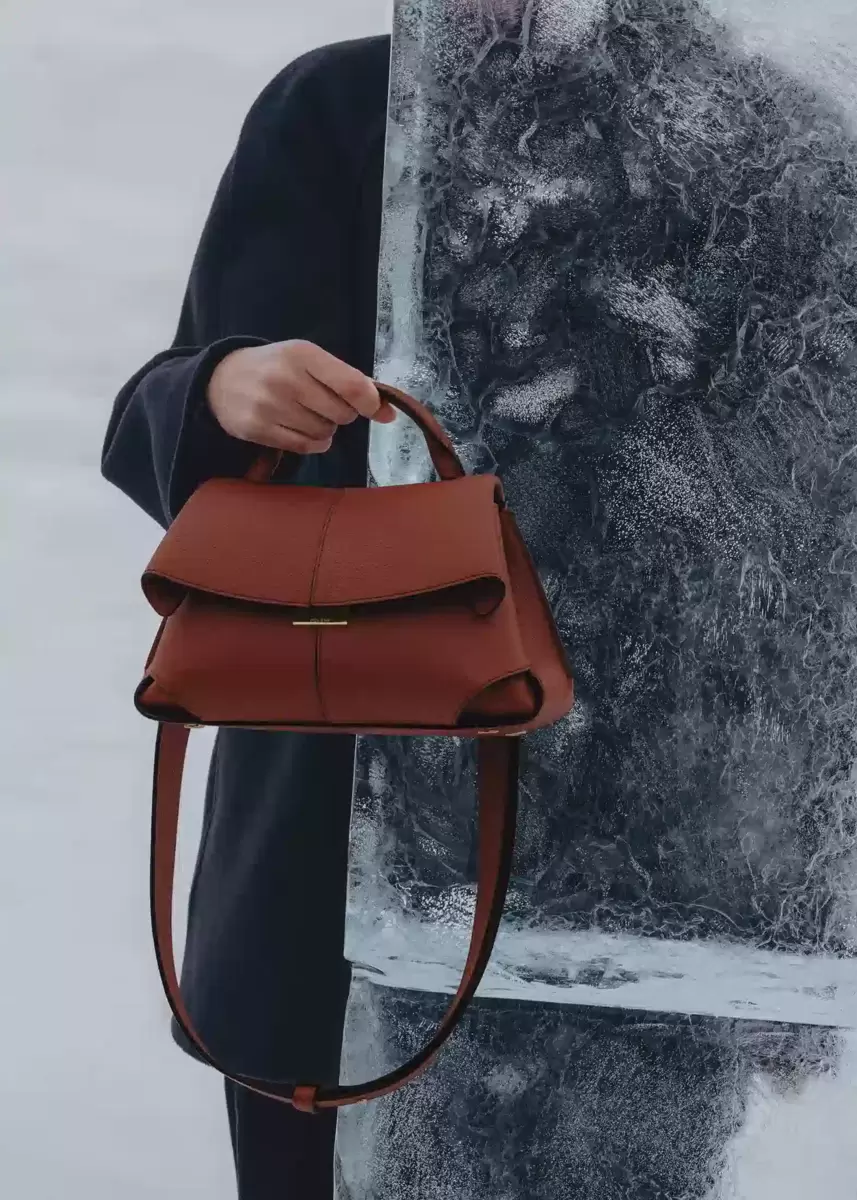 - Polène branded clasp and organically designed bottom studs bearing the Polène logo.