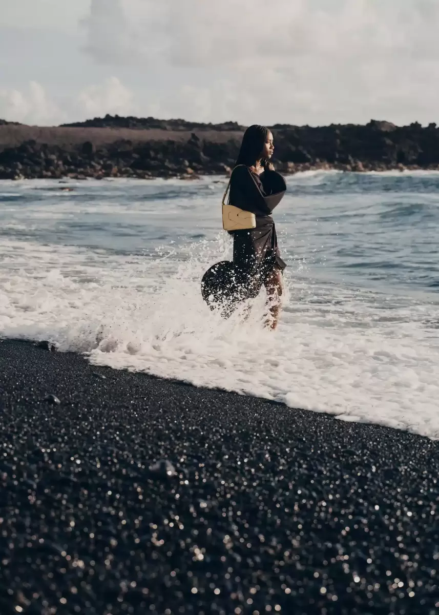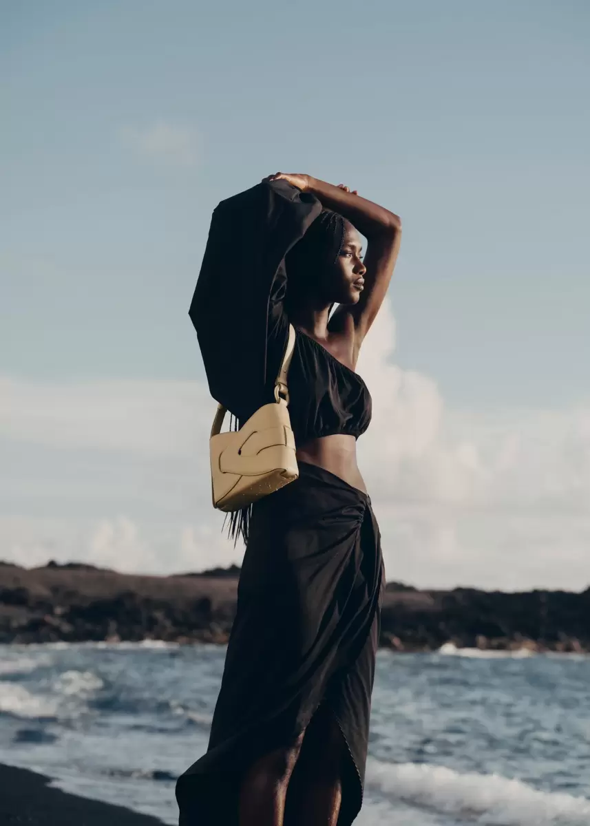 With its rounded shape, foam padding, and hand-stitching, the “Numéro Dix” is a nod to the equestrian codes of saddlery. Its half-moon design highlights juxtaposing curves.