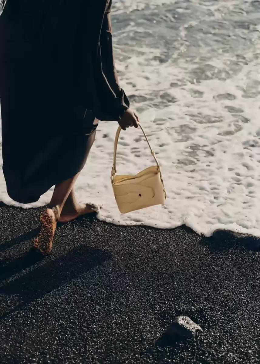 Composed of two matching and intertwined leather modules, the “Nodde” model is a bag with interlaced lines, highlighted by meticulous stitching and perfect symmetry.