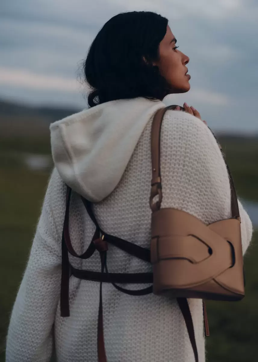Composed of two matching and intertwined leather modules, the “Nodde” model is a bag with interlaced lines, highlighted by meticulous stitching and perfect symmetry.
