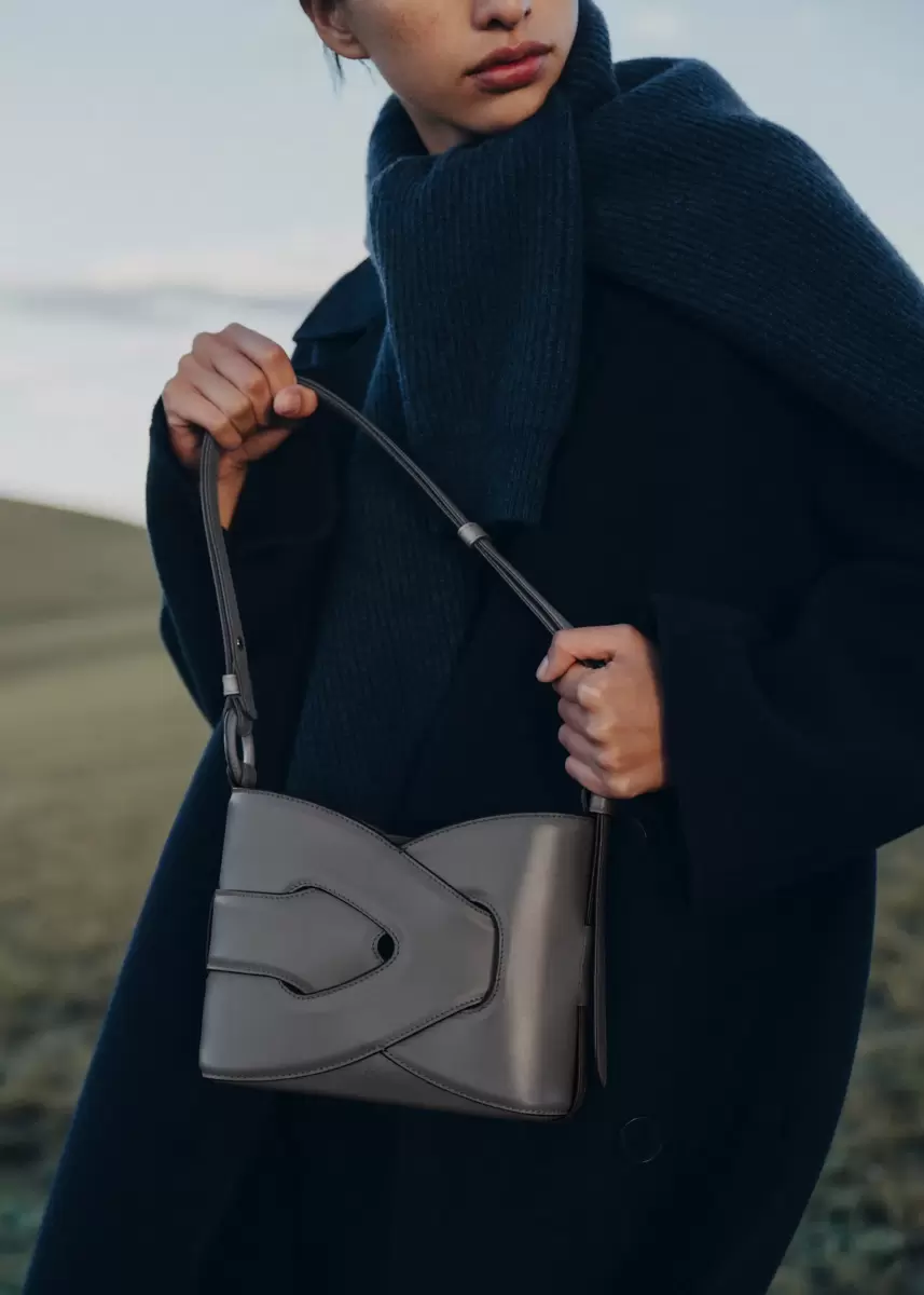 Composed of two matching and intertwined leather modules, the “Nodde” model is a bag with interlaced lines, highlighted by meticulous stitching and perfect symmetry.