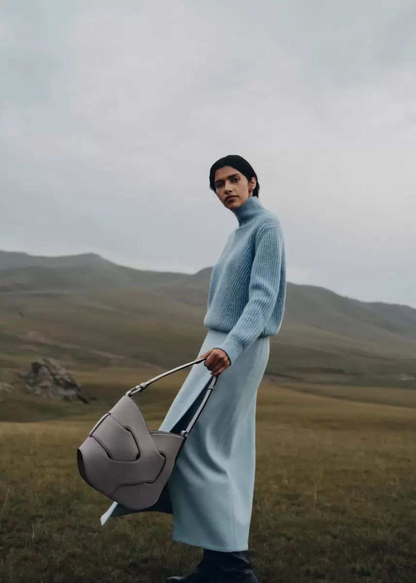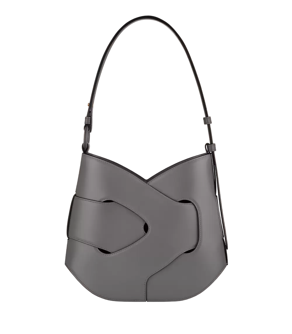 The “Nodde Hobo,” whose name echoes the French word for “knot,” is made up of two perfectly symmetrical, intertwined leather modules. Its beveled design accentuates its dynamic design and its base, set into the main body of the bag using a distinctive assembly technique.