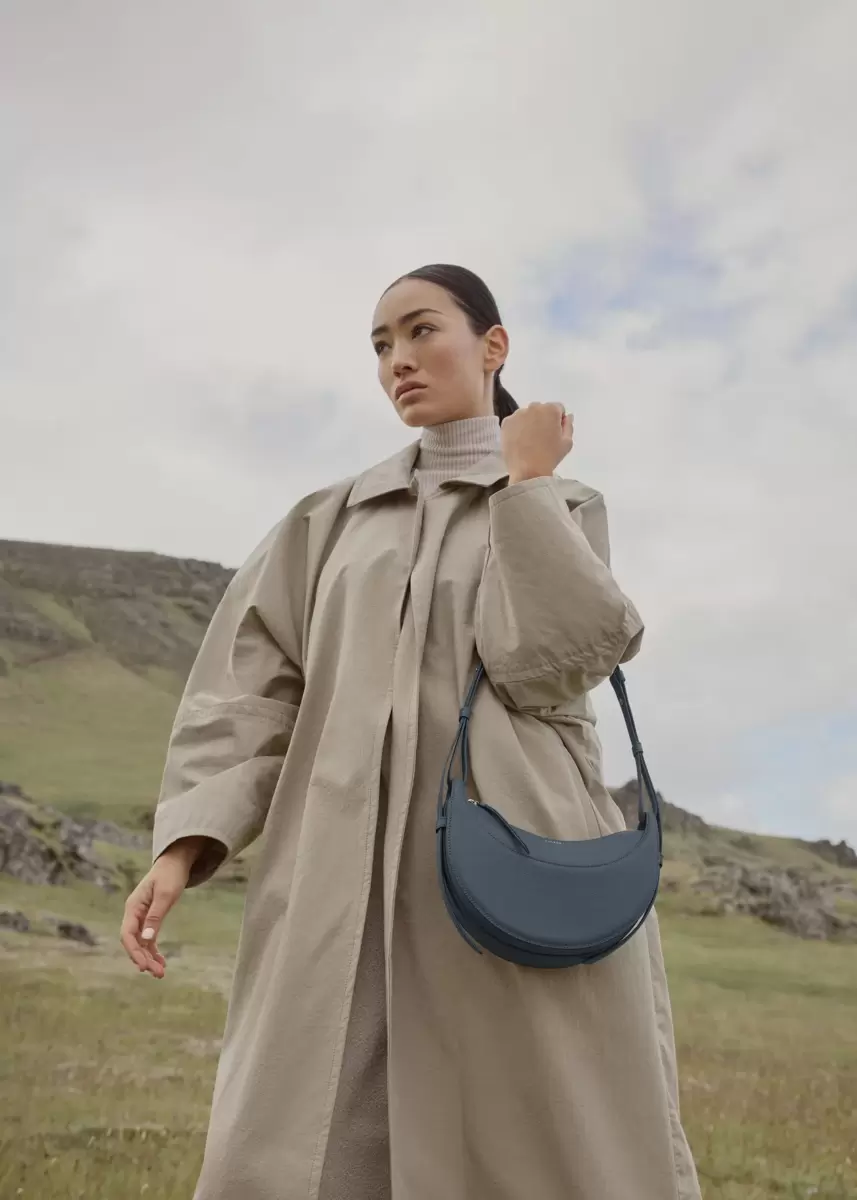 With its rounded shape, foam padding, and hand-stitching, the “Numéro Dix” is a nod to the equestrian codes of saddlery. Its half-moon design highlights juxtaposing curves.