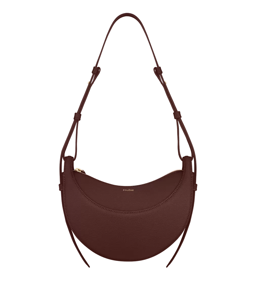 With its rounded shape, foam padding, and hand-stitching, the “Numéro Dix” is a nod to the equestrian codes of saddlery. Its half-moon design highlights juxtaposing curves.