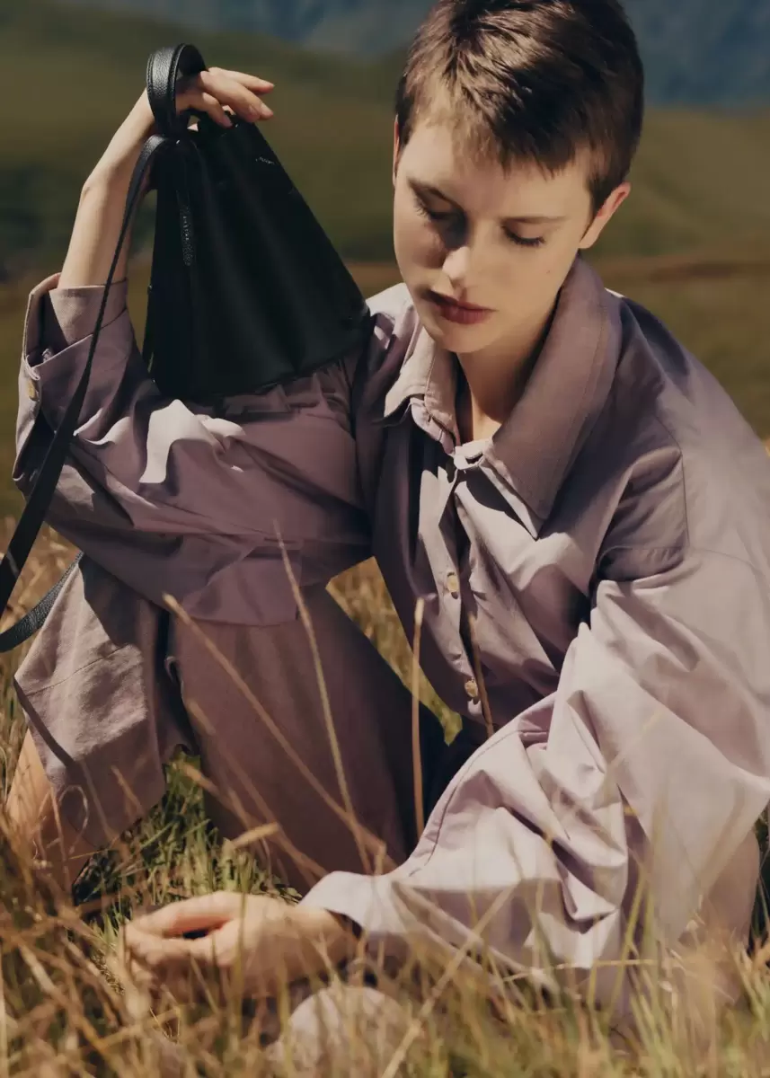 The “Numéro Huit Mini” is a compact, flower-like bucket bag. Its sculptural lines are obtained using waves of leather to create a fluted look.
