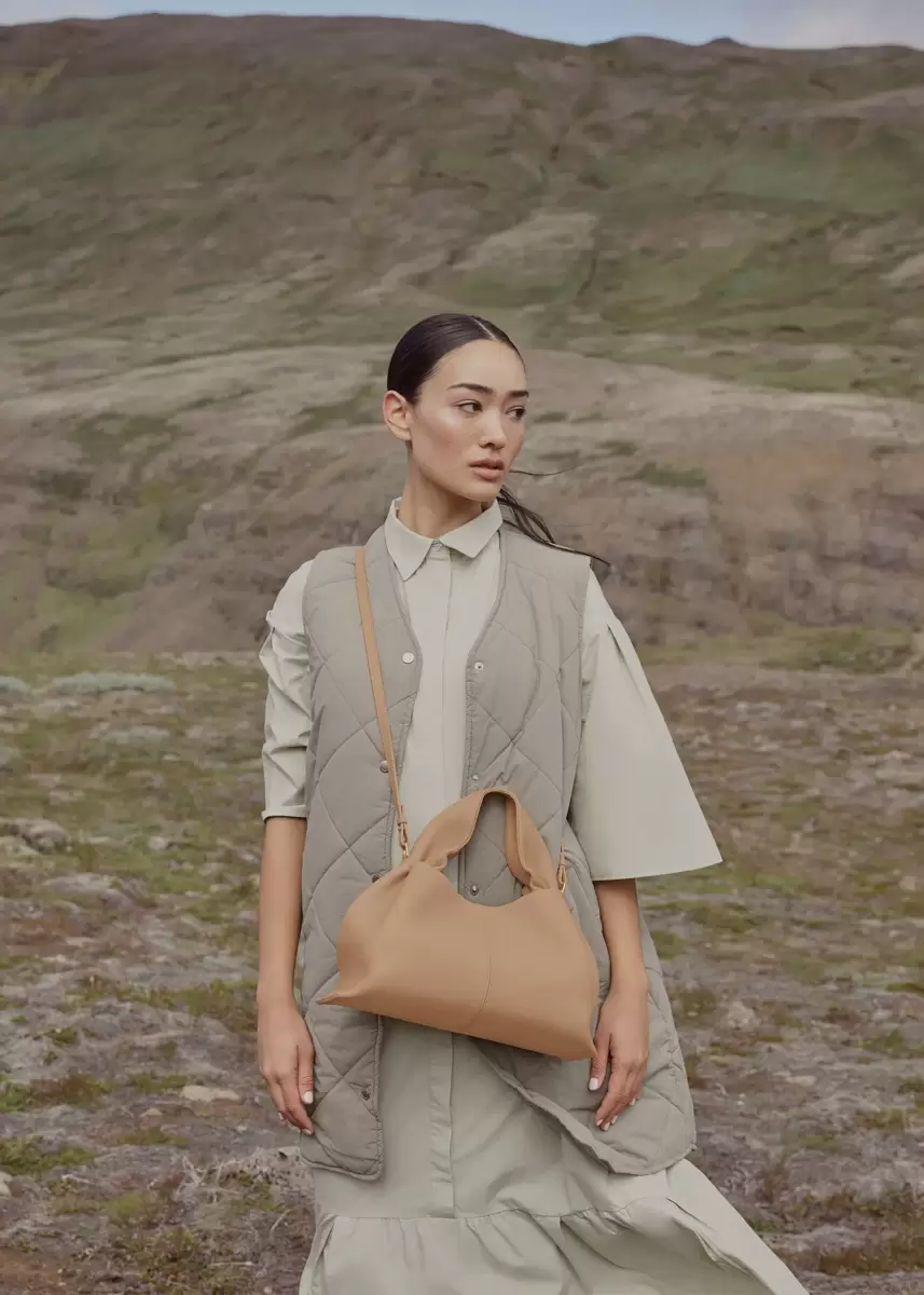 The “Numéro Neuf” features an organic design that strikes the right balance between flexibility and hold. Its draped leather is held in place by hand stitching.