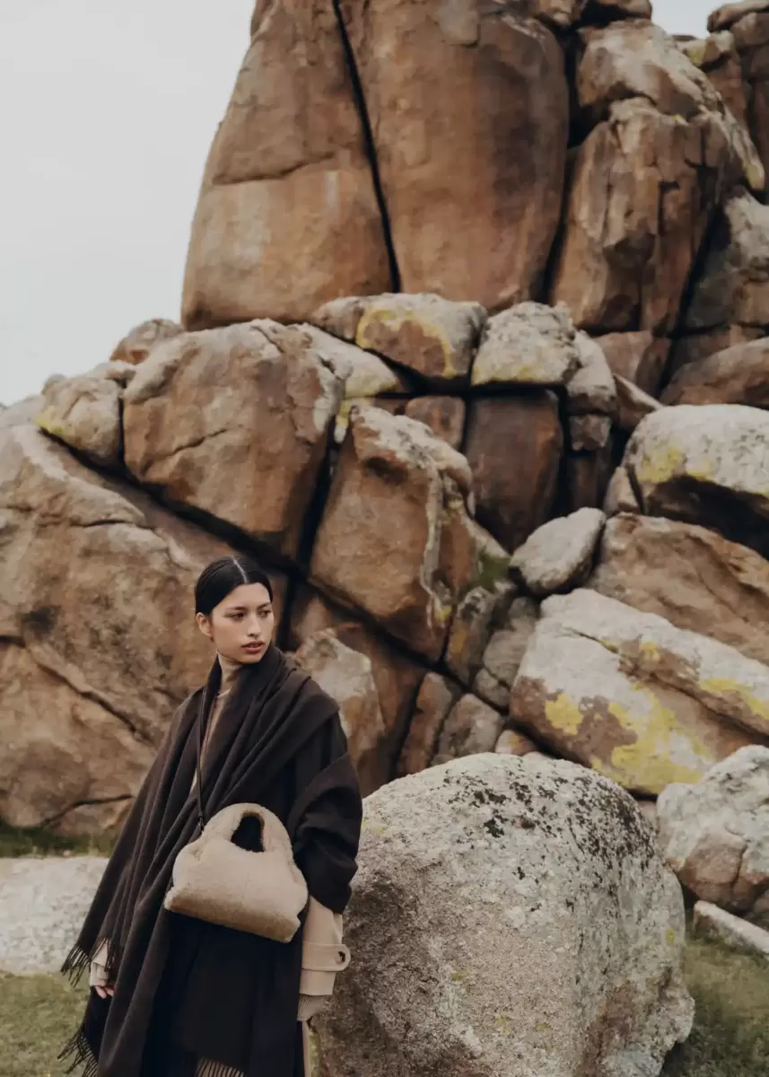 The “Numéro Neuf Mini” features a draped, organic design that blends structure and rounded lines. This invitingly soft edition is crafted from high-quality alpaca and mohair wool, known for its comforting texture feel.