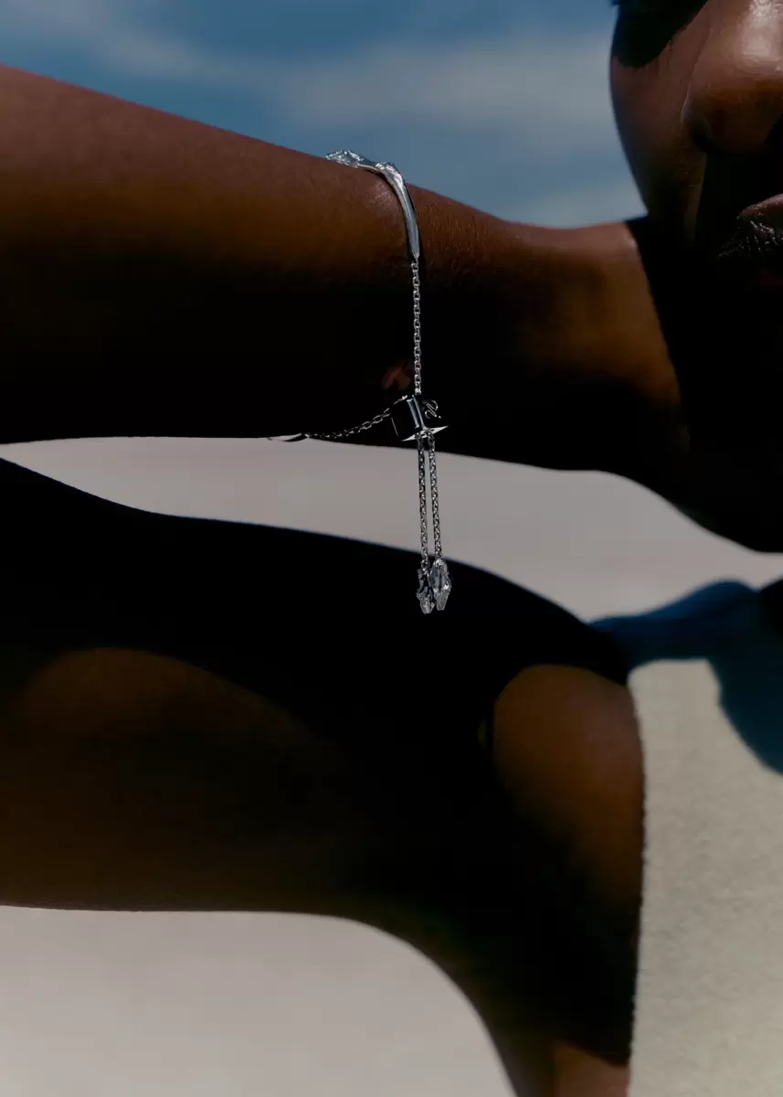 All the subtlety and elegance of a bangle that delicately encircles the wrist. Its design boasts emerging rock effects scattered along the flowing lines of the bracelet. The mirror finishing is meticulously hand-polished.