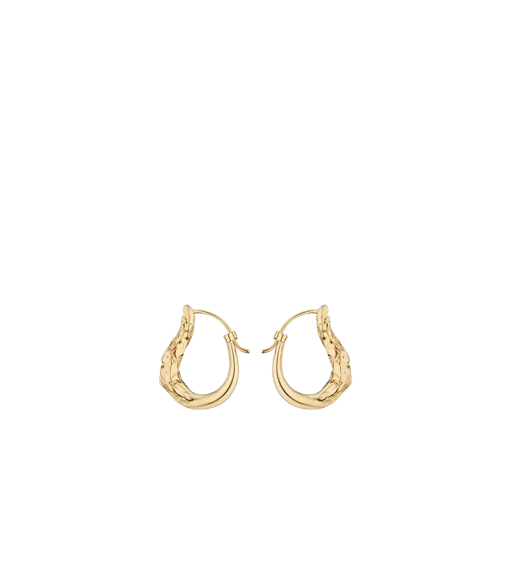 The organic shape of the Eroz slim hoop earrings exudes character. Their rough, stonelike fragments appear to melt into golden droplets.